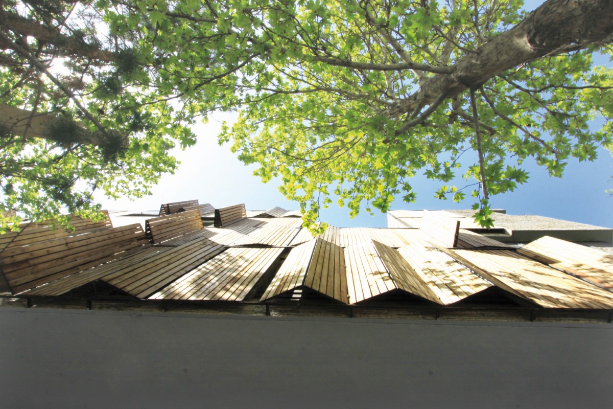 در نمای خارجی، پنجرههای بزرگتر پشت حائلهای چوبی پنهان شده است. این حائلها میتوانند در طول زمستان برای ورود آفتاب گشوده شوند و در طول تابستان برای محافظت در برابر آن بسته شوند. در عین حال، در تابستان امکان تهویه طبیعی نیز با بستهبودن حائلها میسر است؛ زیرا از شبکههایی نفوذپذیر تشکیل یافتهاند. با این راهکار ساده، کاربران میتوانند روشنایی و دما را در خانههای خود تنظیم کنند و میزان قابل توجهی انرژی نیز صرفهجویی میشود. بنا، که با زبان معماری معاصر سخن میگوید، به شکل بینظیری با درختان و محیط سبز محلات ترکیب میشود، شهری کهن که بیش از هزار سال از تاریخ بشریت را به خود دیده است. از این گذشته، با پیادهسازی روشی ساده برای تلفیق سنگهای بازیافتی و بهکارگیری آن در طرحی نبوغآمیز، پروژه موفق به دستیابی به هدفی والاتر در فراهمآوردن راهحلی برای تشویق بازیافت مصالح در جامعه محلی شده است. اتفاقی که از آن پس بر شهر محلات و ساکنان آن از طریق حفاظت از محیط و کمک به اقتصاد محلی تأثیرگذار بوده است.